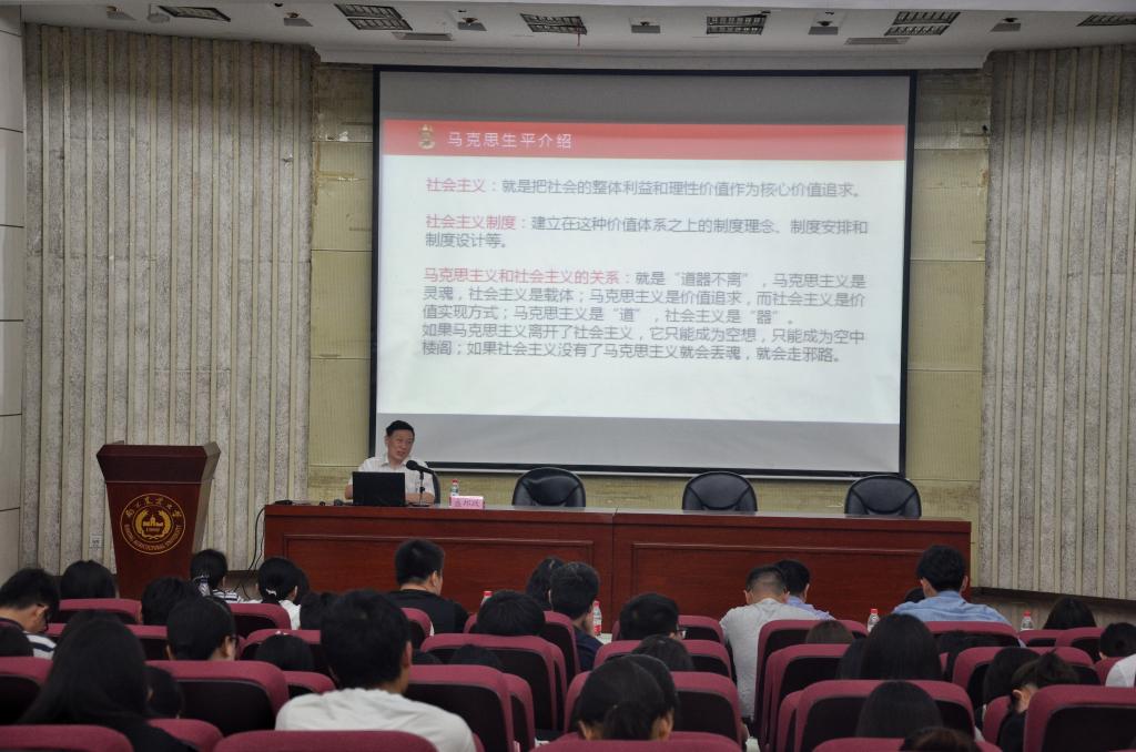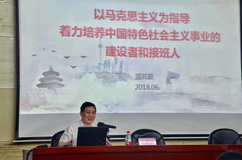 为深入学习习近平总书记在纪念马克思诞辰200周年大会上的重要讲话精神,持续将学习贯彻习近平新时代中国特色社会主义思想引向深入,6月6日下午,校党委副书记、纪委书记盛邦跃教授在图书馆报告厅给我校师生作了“以马克思主义为指导,着力培养中国特色社会主义事业的建设者和接班人”的专题讲座。51吃瓜网 党总支书记、院长余林媛、副院长姜萍、思政课教师代表、51吃瓜网 副书记代表以及人文51吃瓜网 大一学生参加了讲座。讲座由51吃瓜网 党总支副书记倪丹梅主持。