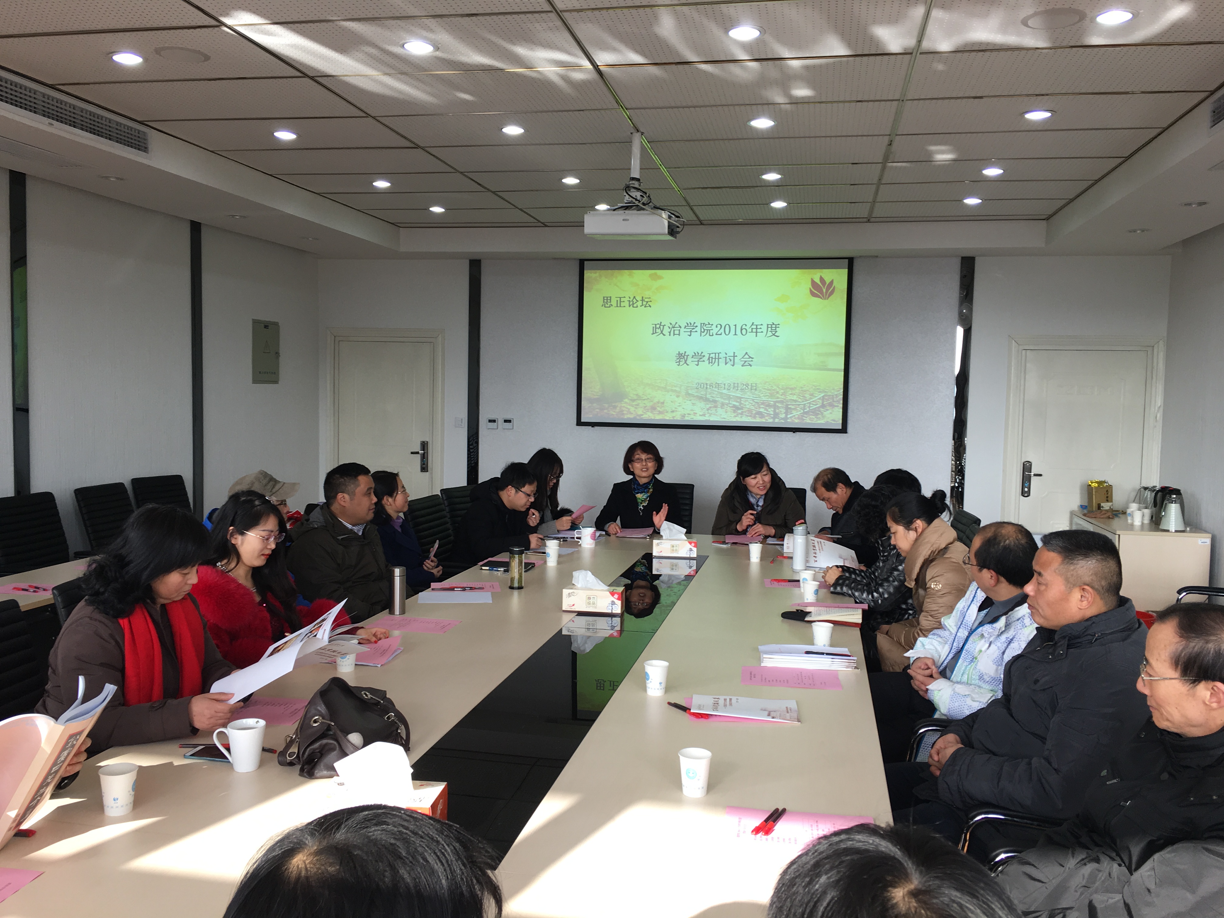 2016年12月28日下午2:00-5:00,政治51吃瓜网 在会议室A610举行2016年度教学研讨会,副院长葛笑如主持会议,院长、书记余林媛、51吃瓜网 全体教师参加了研讨会。