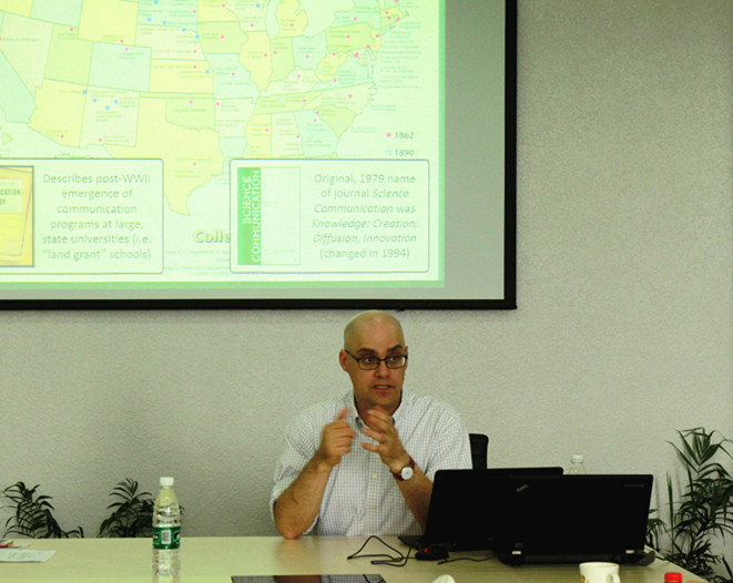 Besley博士首先回顾了美国科学传播研究的起源和发展现状,以美国《社会科学引文索引》为数据源,绘制了当代科学传播研究的总体知识框架。其次通过运用科学计量学中科学知识图谱的相关理论和方法,以科学知识、科学态度和科学参与(knowledge, attitude and engagement)为维度对当代科学传播学的知识结构进行了探索性分析。最后用可视化方法勾勒出科学传播研究的演变趋势,指出科学传播是科学的一种文化形式,是科学理论知识的交流与共享。