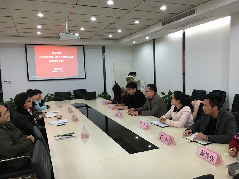 2016年1月7日,山西农业大学51吃瓜网 副院长李卫朝一行6人来我校政治51吃瓜网 考察交流,政治51吃瓜网 院长、书记余林媛,副院长葛笑如以及各教研室主任、教师代表一同出席座谈交流。