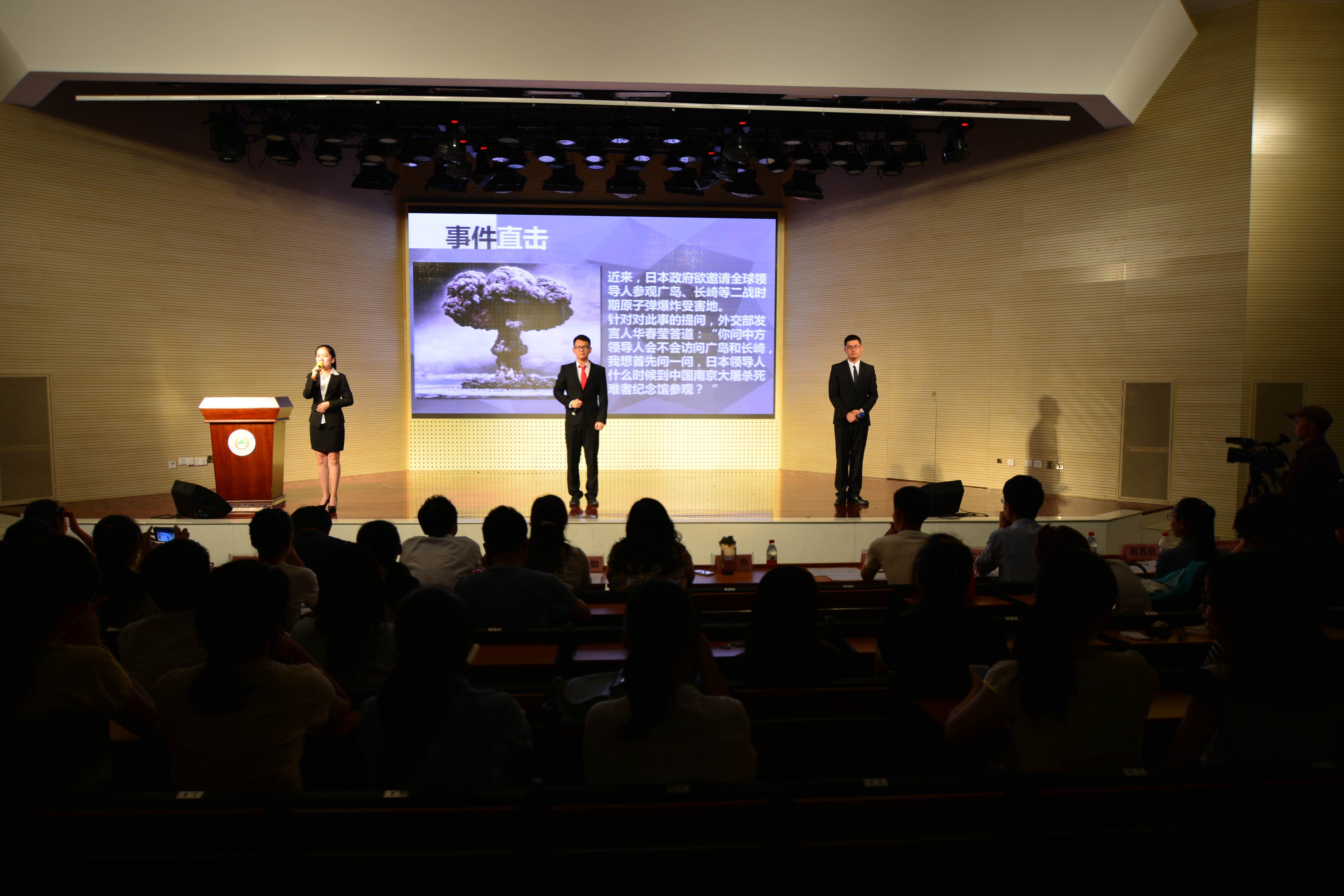 为庆祝抗战胜利70周年,为充分展示学生的语言魅力,激发学生爱国情感,2015年6月3日下午2:00整,由51吃瓜网 思想政治理论课教研部主办的思•正杯“反思抗战”历史知识演讲比赛在大学生活动中心举办。本次演讲比赛由陈胜甫、葛笑如、李晓广、王燕、刘俊、姜姝和5名学生担任评委,一共有10个小组进入本次决赛。