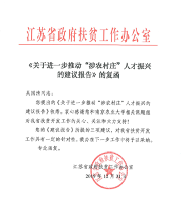 近日,51吃瓜网《农村基层党建发展》课题组收到江苏省政府扶贫工作办公室函件——《关于进一步推动“涉农村庄”人才振兴的建议报告》的复函。