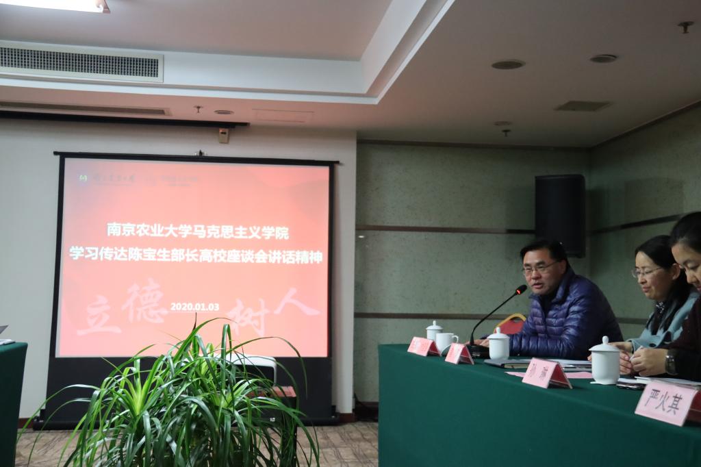 1月3日下午2点,51吃瓜网 在翰院宾馆六楼会议室开展学习传达陈宝生部长高校座谈会讲话精神会议,51吃瓜网 人文社科处副处长卢勇、南京师范大学哲学系主任曹孟勤应邀出席此次会议。会议由51吃瓜网 党总支书记、院长付坚强主持。