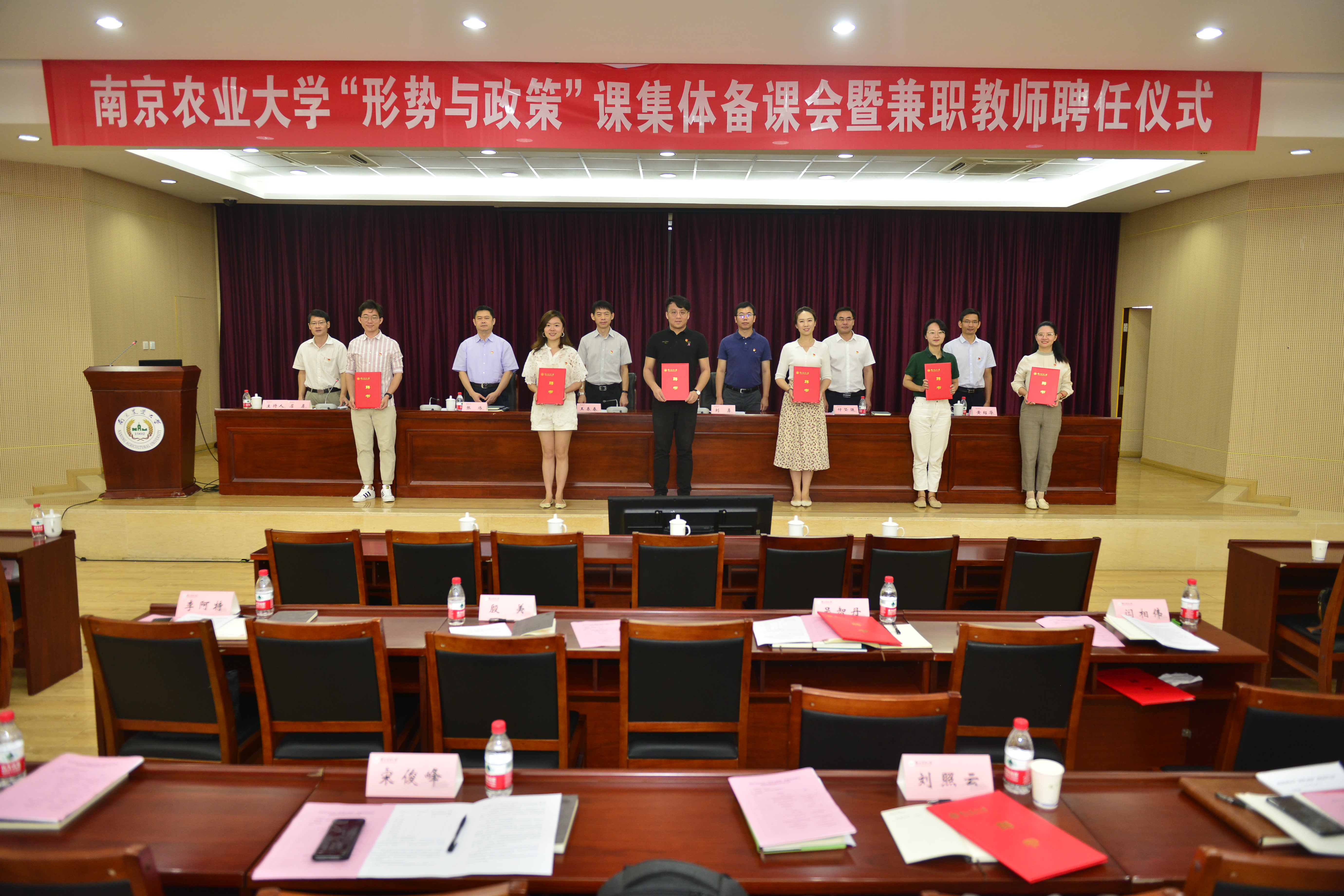 党委宣传部部长刘勇宣读了《关于调整我校“形势与政策”课兼职教师的通知》,与会领导为63位兼职教师颁发了聘书。