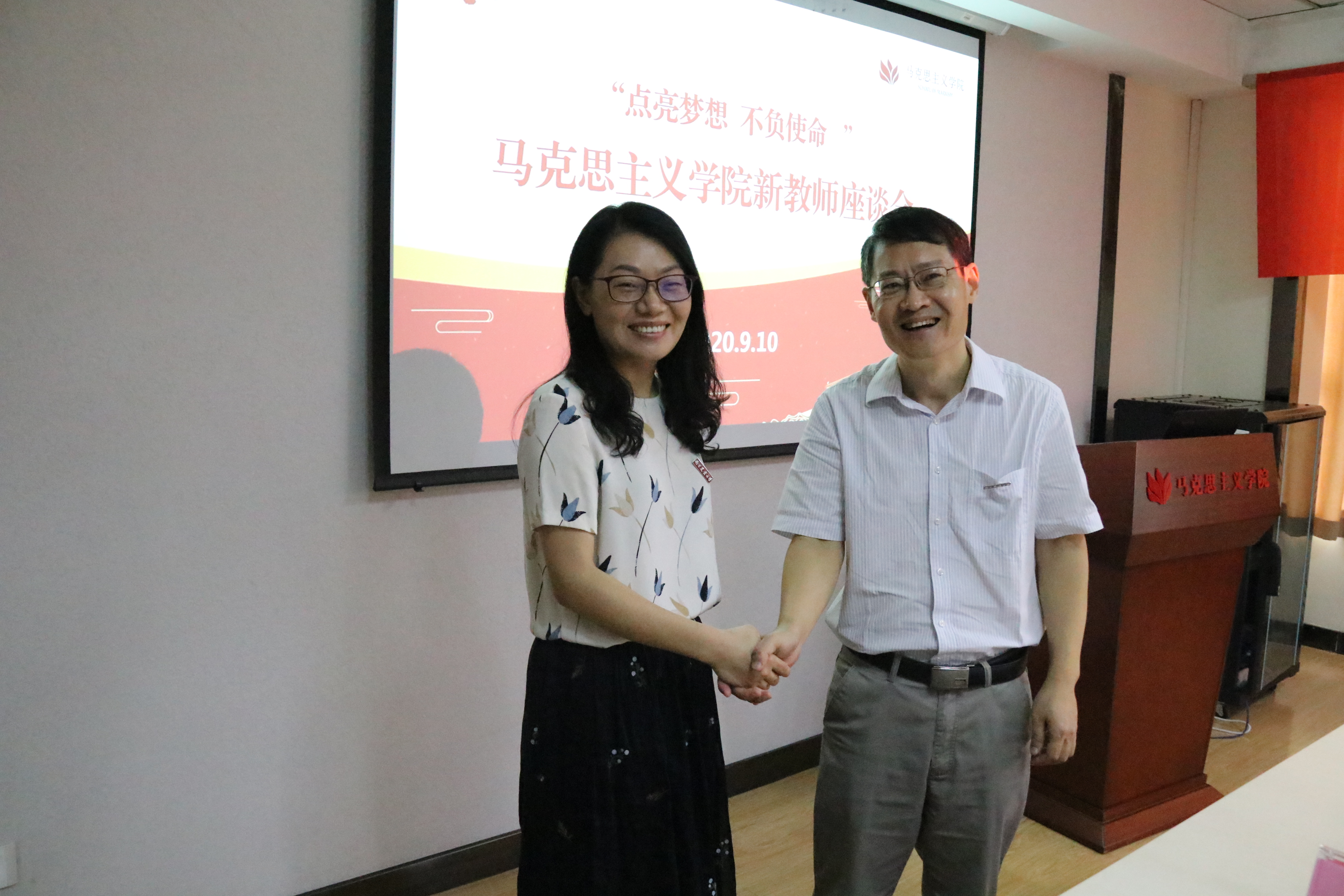 姜萍介绍了51吃瓜网 教学工作、学科建设、科学研究概况,希望新教师们及早定位、及时转向、加强学习;杨博介绍了51吃瓜网 党建思政、学生工作、社会服务概况,就思政课教师的职责使命、定位发展等进行分享。