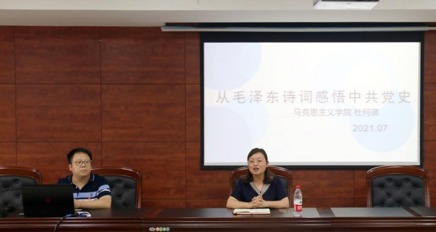 杜何琪从毛泽东诗词中挖掘四史资源,从毛泽东诗作中所描述的时代背景体会党的峥嵘岁月,全面了解党的光辉历程,树立历史思维、强化历史担当。杜何琪强调,学习“四史”有助于我们树立正确的历史观,帮助我们在历史中获得现实的启迪,坚定理想信念,有助于党的广大农村基层地区工作者践行全心全意为民服务宗旨,厚植人民情怀。