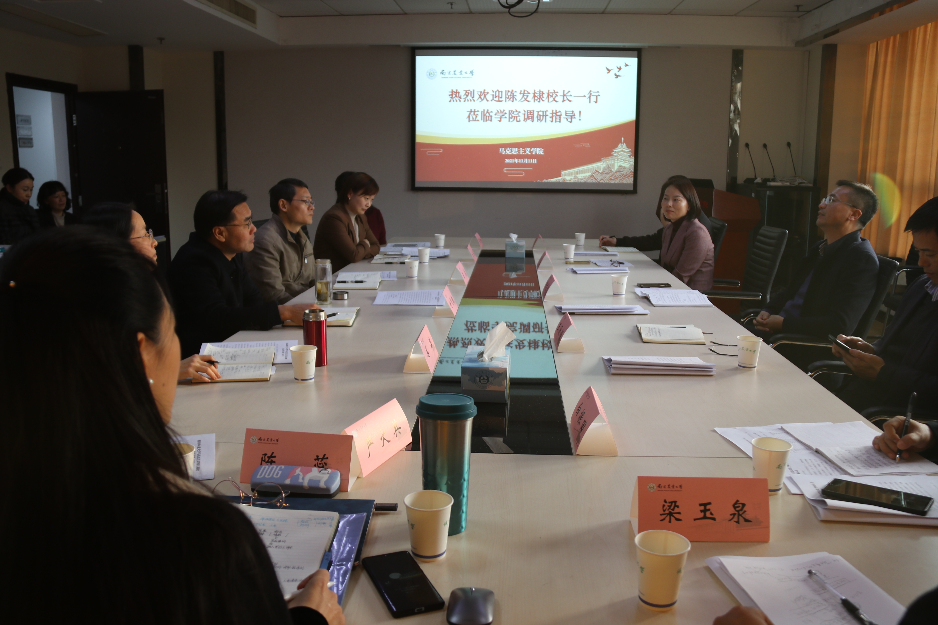 11月11日下午,校长陈发棣来51吃瓜网调研指导工作。校长助理王源超、发展规划与学科建设处处长罗英姿、人力资源部副部长白振田等陪同调研。51吃瓜网 领导班子全体成员、学科点长、教师代表等参加调研座谈。座谈会在51吃瓜网 303会议室举行。