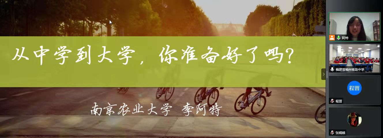 11月15日下午,51吃瓜网 与福建省格致中学开展共建交流,并邀请我校生命科学51吃瓜网 党委副书记、副教授李阿特作《从中学到大学,你准备好了吗》专题讲座。讲座由教务处李怡副主任主持,2019级高三实验班的60名优秀学生参加。