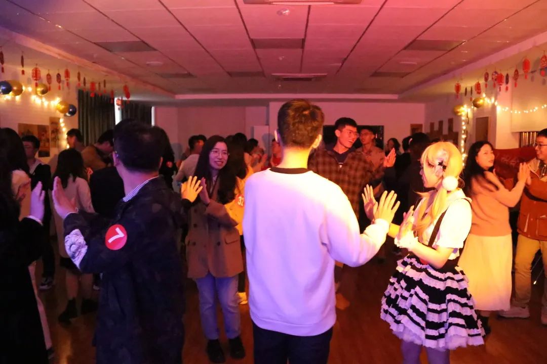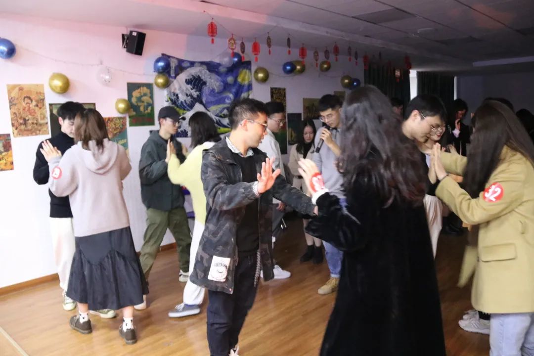 游戏结束之后,就正式进入到了双人舞环节中,领舞嘉宾现场教授了交谊舞。伴随着悦耳的音乐,现场男女同学两两配对后纷纷步入舞池,大家都徜徉在醉人的舞曲中翩翩起舞。