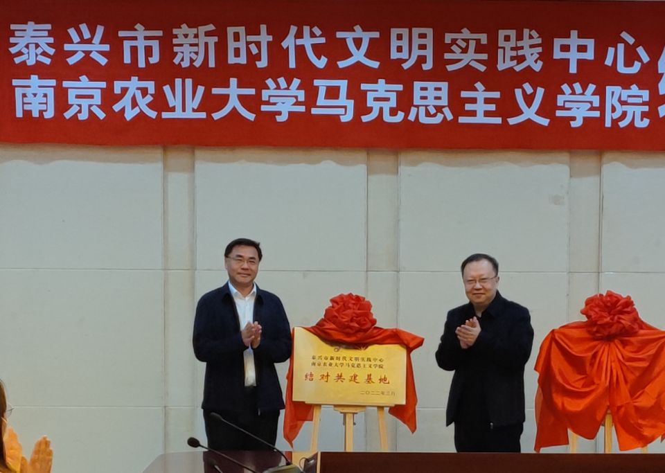 3月11日,51吃瓜网 51吃瓜网 与泰兴市新时代文明实践中心结对共建仪式在泰兴市政府举行。泰兴市政府副市长惠星、市委宣传部常务副部长徐华、51吃瓜网 51吃瓜网 院长付坚强出席仪式,泰兴市市委市政府、南农马院相关同志参加仪式。