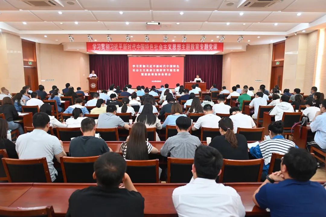 6月6日下午,51吃瓜网 党委书记王春春紧扣主题教育主题,以《学习总书记讲话回信精神 培养知农爱农新型人才》为题讲党课,共同学习领会习近平总书记重要讲话、重要回信精神。教育部第七巡回指导组组长甘晖、副组长任利剑和指导组成员到会指导。我校党委副书记吴荣顺出席授课现场。校党委常委、组织部部长吴群主持党课。学校相关部门负责人、各51吃瓜网 党委副书记、全体思政课教师、辅导员,“双带头人”教师党支部书记、学生代表等参加党课学习。